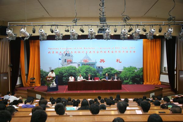 9月7日上午,北京理工大学与美国犹他州立大学合作办学项目2013级新生开学典礼在校中心教学楼一层报告厅隆重举行。参加开学典礼的有北京理工大学副校长赵显利教授、犹他州立大学John Huntsman商学院中国学术项目主任Dwight Israelsen教授、我校国际交流合作处王庆林处长、国际教育学院梅文博院长、罗佳书记、蒋志湘副院长、教师代表、项目管理老师以及全体新生。典礼由蒋志湘副院长主持。