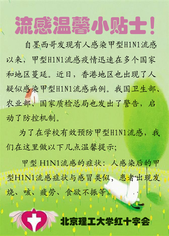 > 学生红十字会:预防甲型H1N1流感健康宣传