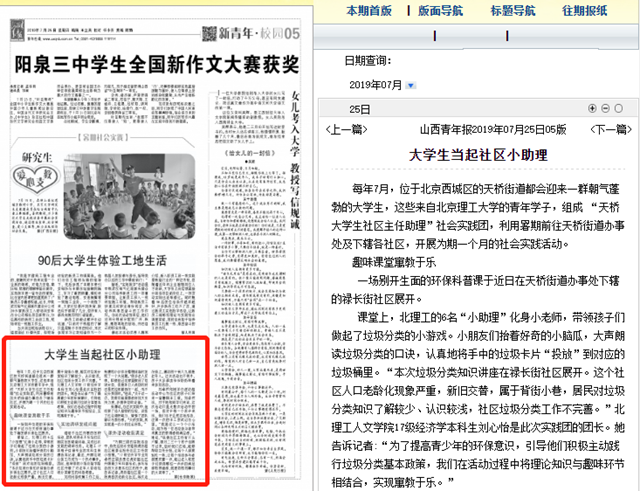 每年7月,位于北京西城区的天桥街道都会迎来一群朝气蓬勃的大学生,这些来自北京理工大学的青年学子,组成 “天桥大学生社区主任助理”社会实践团,利用暑期前往天桥街道办事处及下辖各社区,开展为期一个月的社会实践活动。