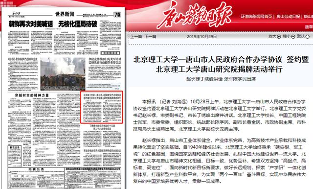 北京理工大学—唐山市人民政府合作办学协议签约暨北京理工大学唐山研究院揭牌活动举行
