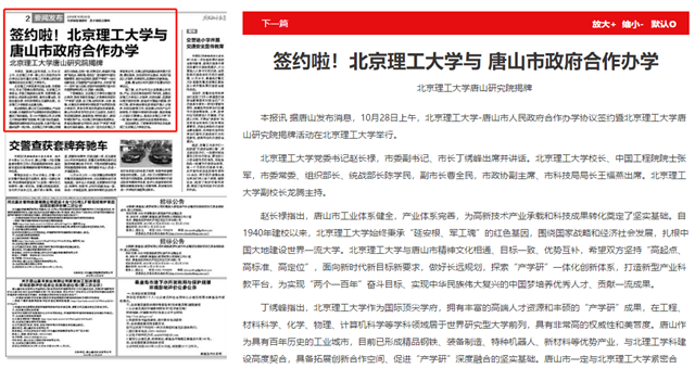 签约啦!北京理工大学与 唐山市政府合作办学