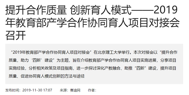 原文标题:提升合作质量 创新育人模式——2019年教育部产学合作协同育人项目对接会召开