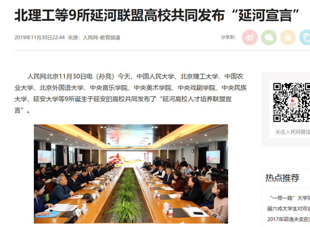 编辑:吴楠 审核:王征 阅读次数:原文标题:北理工等9所延河联盟高校共同发布“延河宣言”