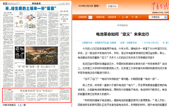 陈人杰说,科学家一直致力于提升电池的“电力”,开发具有更高能量密度的电池体系。从铅酸电池到镍镉电池,再到如今的锂离子电池,电池材料不断变化,电池的能量密度已经有很大的提升。
