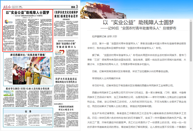 于是,旦增罗布对残疾人的援助方式开始由募资捐助转向创办专门聘用残疾人的企业,他自己称之为“实业公益”。