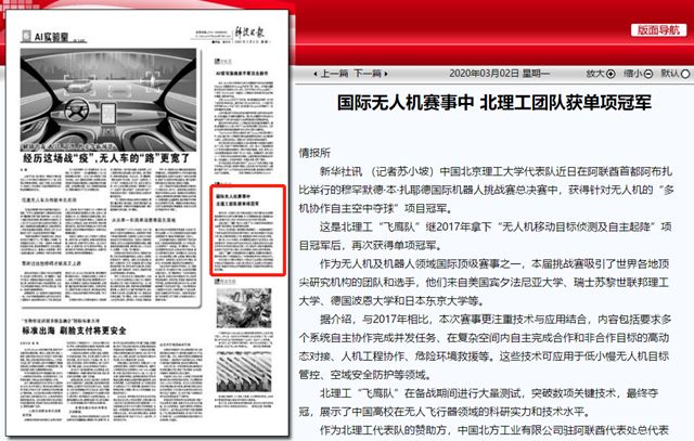 编辑:吴楠 审核:刘晓俏 阅读次数:原文标题:国际无人机赛事中 北理工团队获单项冠军