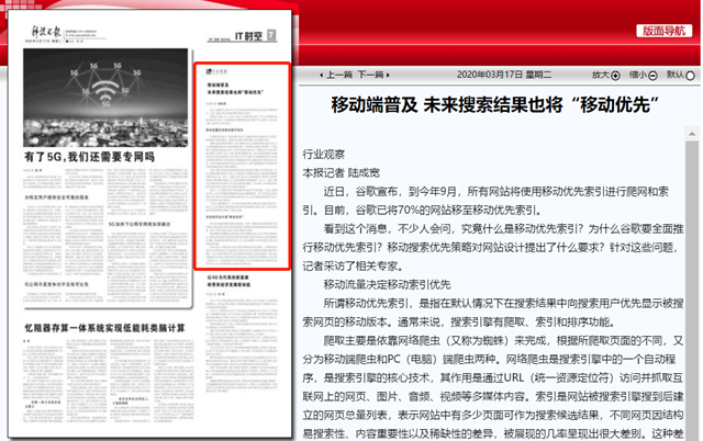 “但是,谷歌的做法不一样,它将全面使用默认的移动优先搜索结果索引。换言之,以后谷歌将主要依托移动网页而不是电脑网页来建立索引,未来可能不会同时保留两种索引版本。”闫怀志说道。
