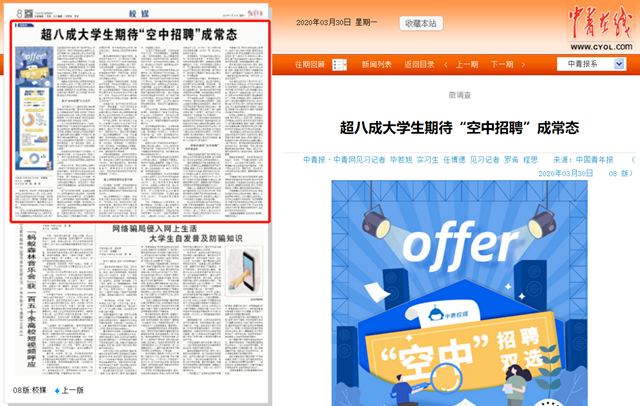 编辑:吴楠 审核:刘晓俏 阅读次数:原文标题:超八成大学生期待“空中招聘”成常态