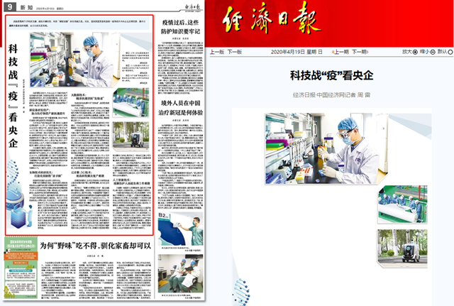 在疫情阻击战中,中央企业大力推动传统产业领域科技创新,加强药品疫苗、检测试剂、医疗装备等科研攻关,有力支持疫情防控。此外,他们还抢抓技术更新迭代的发展机遇,将对“新技术、新产业、新业态、新模式”的探索从实验室带到了抗疫一线,助力复工复产。