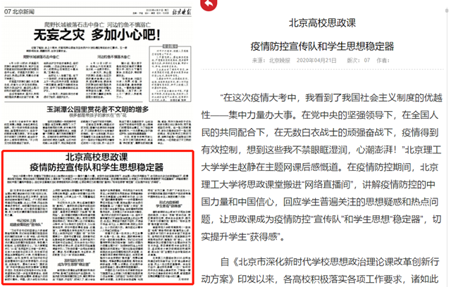 北京高校思政课 疫情防控宣传队和学生思想稳定器