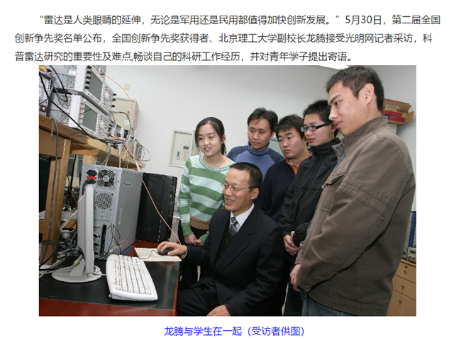 “雷达是人类眼睛的延伸,无论是军用还是民用都值得加快创新发展。”5月30日,第二届全国创新争先奖名单公布,全国创新争先奖获得者、北京理工大学副校长龙腾接受光明网记者采访,科普雷达研究的重要性及难点,畅谈自己的科研工作经历,并对青年学子提出寄语。
