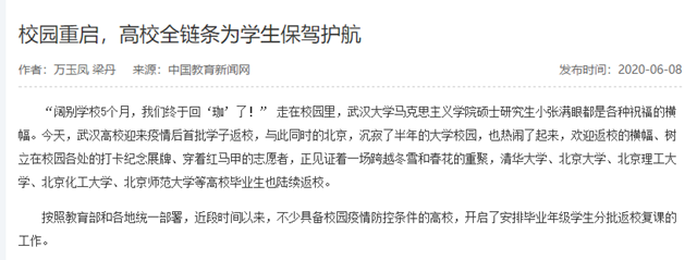 校园重启,高校全链条为学生保驾护航