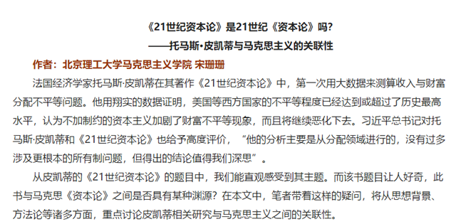 ——托马斯·皮凯蒂与马克思主义的关联性