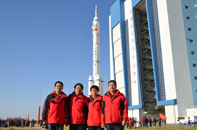 杨春华与项目组部分师生在“神舟八号”酒泉卫星发射中心现场