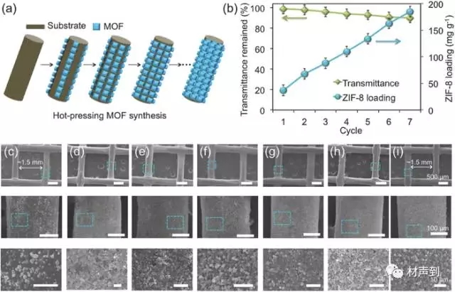图2 逐层(layer-by-layer)涂覆 MOF 示意图及相关表征