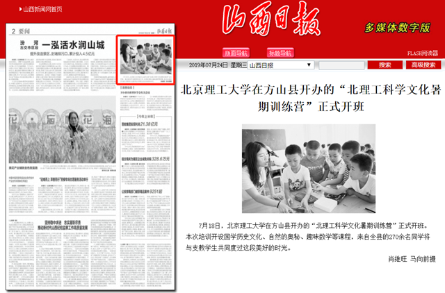 【山西日报】北京理工大学在方山县开办的“北理工科学文化暑期训练营”正式开班
