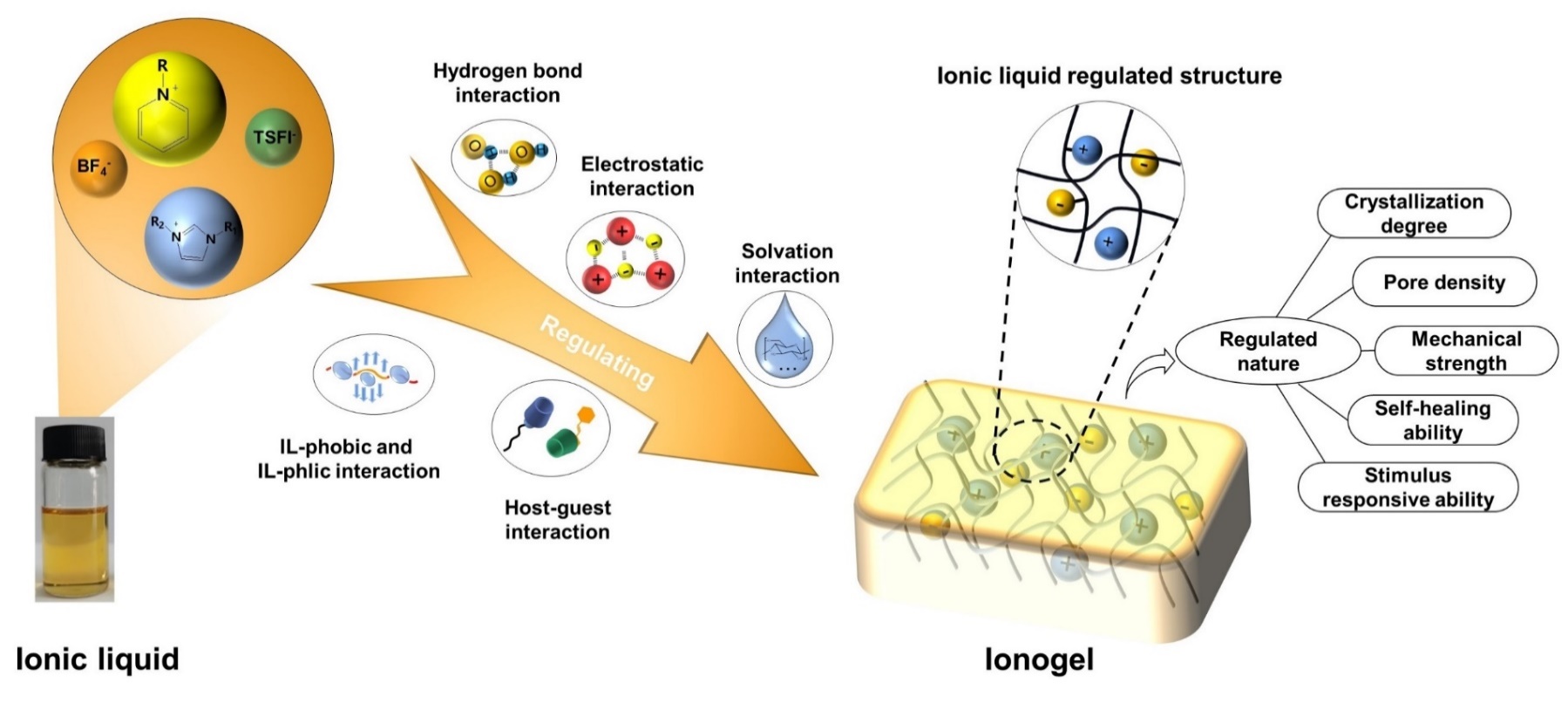 Zhihong Luo, Wenjin Li, Jipeng Yan,* and Jian Sun*, Roles of Ionic Liquids in Adjusting Nature of Ionogels: A Mini Review, Advanced Functional Materials, 2022, 2203988. https://onlinelibrary.wiley.com/doi/10.1002/adfm.202203988