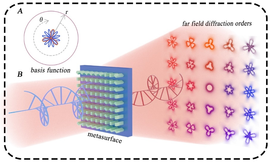 近日,北京理工大学王涌天教授团队的黄玲玲教授等人与香港大学张霜老师合作,提出了一种基于达曼涡旋超表面的光束微分运算方法,实现了数学函数微分加减运算的全光表达。该项研究成果发表在国际著名期刊 Science Advances 上,题目为Basis function approach for diffractive pattern generation with Dammann Vortex Metasurfaces。