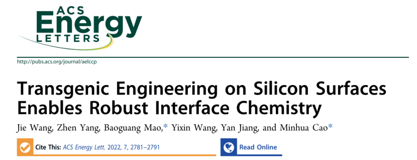 近日,北京理工大学化学与化工学院曹敏花教授团队在锂离子电池硅负极研究领域取得重要进展,相关研究成果以“Transgenic Engineering on Silicon Surfaces Enables Robust Interface Chemistry”为题,在《ACS Energy Letters》期刊上在线发表(DOI: 10.1021/acsenergylett.2c01202)。