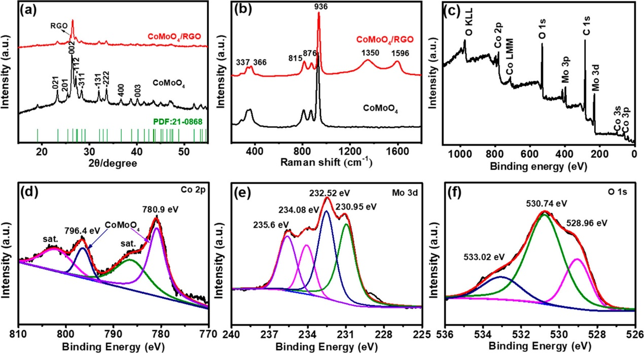 XRD、Raman和XPS等表征证明了CoMoO4/RGO电池型电极材料的成功复合。