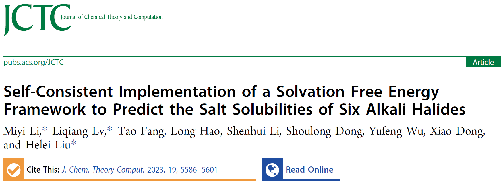 近日,北京理工大学化学与化工学院李弥异、刘贺磊、董守龙等在溶液热力学领域发表重要研究性论文(https://doi.org/10.1021/acs.jctc.3c00083)。论文发表在《Journal of Chemical Theory and Computation》(影响因子:5.5,1区Top)。该工作以北京理工大学为第一通讯单位,李弥异为第一作者和通讯作者,刘贺磊教授同为通讯作者,董守龙、董晓老师,博士生李申辉,硕士生吴宇峰为参与作者。