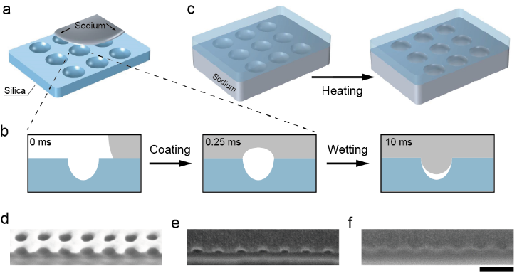 金属表面等离激元效应自发现就以其独特的突破光学衍射极限的能力受到瞩目,继而在亚波长光子芯片以及纳米尺度成像、激光和非线性光学领域有着广泛的应用。其中,基于等离激元微纳结构的超表面能够实现包括颜色显示、全息成像、高品质因子表面晶格共振、传感等诸多功能。在众多的等离激元材料中,碱金属钠由于其相对较低的光学损耗,成为贵金属的理想替代材料之一,但其活泼的化学性质使得其材料制备和器件稳定性问题难以解决,钠基等离激元器件鲜有报道。2020年,汪洋等人在[Nature, 581, 401 (2020)]上首次报道了基于钠的稳定、高性能等离激元器件,研究团队开发了一种热辅助的液态金属旋涂技术,实现高性能等离激元光波导和纳米激光器,首次证实了钠基等离激元器件的可行性。此外,碱金属钠在地壳中的丰度远高于贵金属,且具有成熟的工业制造工艺,因此是未来大规模实现微纳光子器件的理想材料之一。