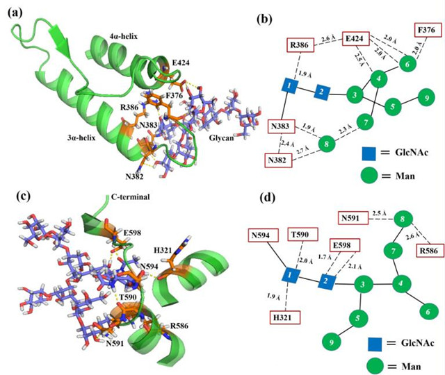 研究人员不仅从蛋白质多结构层次水平的角度对糖链和蛋白质之间的相互作用提供了独特的见解,而且促进了N-糖基化的理性设计,使其成为提高蛋白质稳定性的通用技术。相关研究发表在Journal of Physical Chemistry Letters(2018, 9, 4638−4645,IF="8.709)杂志上,该文章的第一作者是北京理工大学的冯旭东预聘助理教授和王小艳博士。