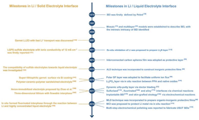 图2 锂金属负极与液态(固态)电解质之间界面工程的发展史