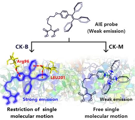 北理工在基于单分子旋转受限的AIE荧光探针选择性点亮肌酸激酶特定亚基取得研究进展