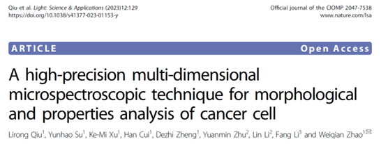 北京理工大学光电学院赵维谦教授课题组提出了具有高稳定、高分辨、抗散射的激光差动共焦拉曼-布里渊图谱成像新原理,研制成功了相应的仪器,实现了样品三维形貌、力学性能和化学组分的多维信息检测,并与北京大学航天临床医学院(航天中心医院)合作,利用该研制仪器对肿瘤组织进行了有效表征分析。相关工作发表在Light: Science & Applications上 (Light: Science & Applications,12, 129 (2023))。该研究工作以北京理工大学为第一通讯单位,赵维谦教授为通讯作者,邱丽荣教授为论文的第一作者。