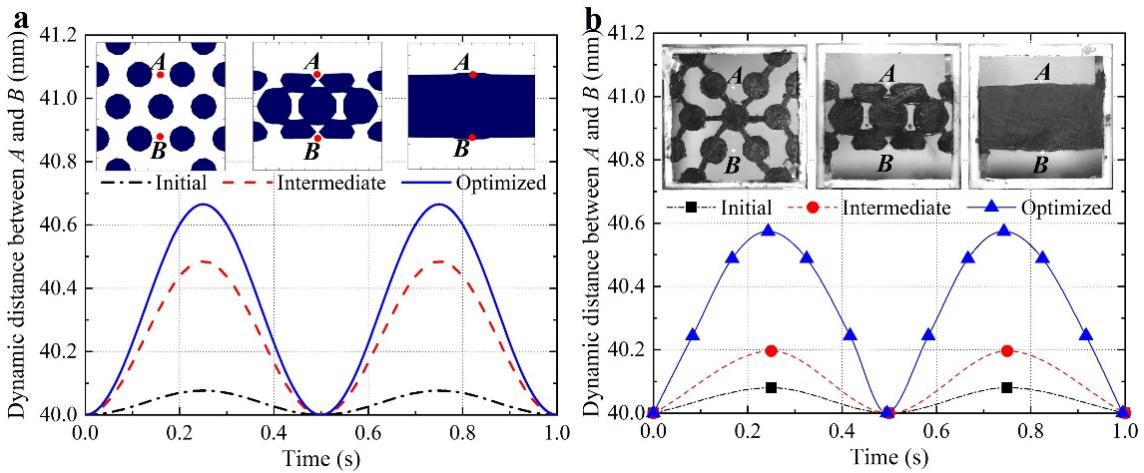 图2 介电弹性体软作动器电极拓扑优化:(a) 计算结果; (b) 实验结果