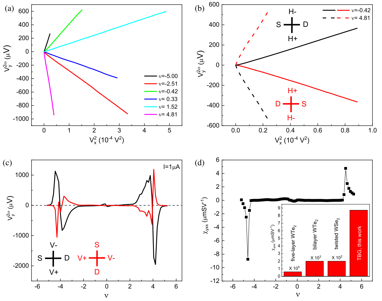 图1. 转角石墨烯中的巨二阶非线性霍尔效应