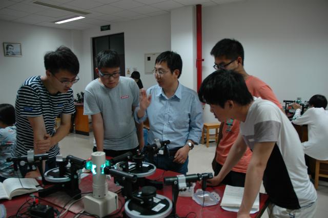 “第四届北京高等学校物理基础课程青年教师讲课比赛(实验课)”于5月14日在北京大学举行。本次比赛为第一次举办的实验课讲课比赛,比赛讲课内容涵盖《理工科类大学物理实验课程教学基本要求》。讲课部分主要涉及实验思想,基本方法、原理、概念 ,以及根据教学需要穿插的历史背景或应用举例等等;提问部分主要涉及实验现象与物理原理的联系,实验现象与设备调整之间的关系、原则、思路,误差的分析与处理等等。北京理工大学、北京航天航空大学等在京高校选派45岁以下优秀青年教师参赛, 60余名高校物理教师到场观摩。我校物理学院青年教师刘伟代表学校参加了比赛。
