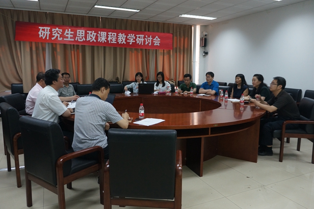 为进一步落实中共中央国务院《关于加强和改进新形势下高校思想政治工作的意见》,积极推进我校研究生思政课程教学改革,不断提高研究生思政课程教学质量,6月16日下午,我校研究生院和马克思主义学院领导和老师在研究生楼举行座谈会,共同研讨研究生思政课教学工作。研究生院常务副院长王军政等5人,马克思主义学院常务副院长李林英、研究生思政课教研室教师等7人参加了座谈会。