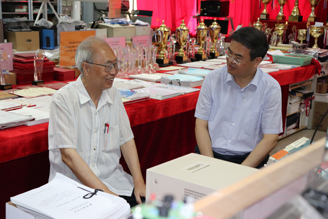 在90岁高龄的洪宝华教授家中,赵长禄书记与其亲切交谈,向他介绍了学校目前的发展状况,认真了解洪老师的身体、生活等情况,感谢洪老师作为管理学科的老专家,夯实了管理学的学科基础,为学校管理学科发展作出的突出贡献,并仔细倾听他关于加强实践教学,提高学生动手能力和实践能力的建议。赵长禄书记嘱咐随行的离退休工作部门同志,要多与老教授们沟通交流,多倾听他们的建议,珍惜老同志这笔学校的宝贵财富。