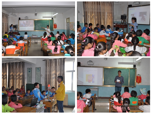 在之后的支教课程中,实践团成员为同学们带来了音乐乐理与电子琴课程,让同学们在跳跃的音符中感受音乐的魅力;饮料课程,让同学们在了解饮料配置方法及动手配置的过程中,正确辩证地认识饮料中的各个成分;水火箭课程,为同学们讲解了火箭的发展史、火箭及水火箭的组成与运行原理,并通过一个下午的小组动手制作水火箭和发射过程,让同学们进一步感受到火箭的威力与科技的力量;探索科技课程,为同学们展示了未来世界可能的样子及目前各领域最先进的科学技术,让同学们通过上台体验立体照片,观看3D电影等亲身参与的形式,融入科技之中,在展示先进科技的同时,又讲述了滥用科技对自然的危害;视错觉课程则通过旋转的舞者引出眼睛是如何欺骗我们的,激发了同学们深入探索的兴趣,并通过逐步引导与讲解、动手折纸等方式让同学们真正明白眼见也不一定为实的原理;正值反法西斯战争胜利七十周年,实践团精心安排了反法西斯的相关课程,通过追忆那段艰苦的抗战历史,让同学们明白落后就要挨打的道理,更加珍惜今天来之不易的幸福生活,热爱和平,壮大祖国;五子棋课程是实践团创新的棋类益智课程,通过简单普及的五子棋,讲述下棋方式中的大智慧,让每个同学都参与其中感受动脑的快乐;寻枪作为红色经典课程,为同学们生动风趣地讲述了枪的发展史及发射原理,展示了最先进的枪械科技,同时为同学们介绍了北京理工大学的枪王朵英贤院士,得到了同学们的热烈反响。