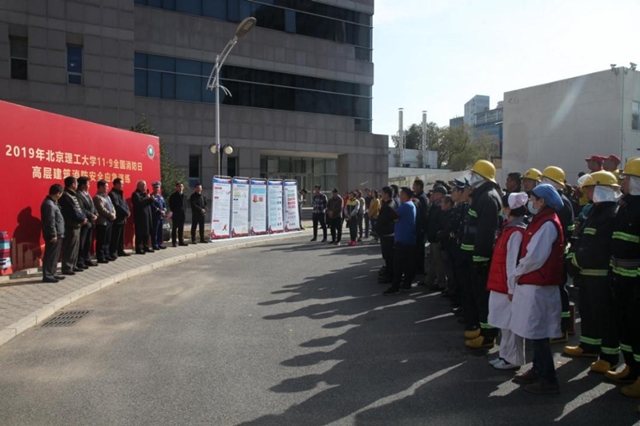 为深入贯彻落实《中华人民共和国消防法》《高等学校消防安全管理规定》等文件精神,切实增强师生消防安全意识,提高自我保护能力,11月7日上午10点30分,学校联合双榆树消防中队,针对10号新信息楼消防重点部位开展高层建筑逃生灭火演习。副校长李和章出席,学校宣传部、保卫部、资产与实验室管理处、后勤基建处、校医院、居管会、资产经营有限公司及信息学院等部门和学院同志,以及师生代表、物业服务人员、保安队员等百余人参加。