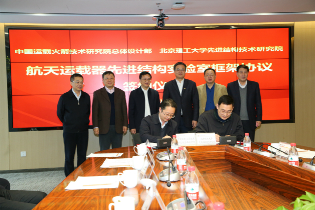 项昌乐和王晓东代表双方签署《中国运载火箭技术研究院-北京理工大学战略合作备忘录》,杨亚政与中国运载火箭技术研究院总体设计部主任王国辉共同签署《共建航天运载器先进结构实验室框架协议》。