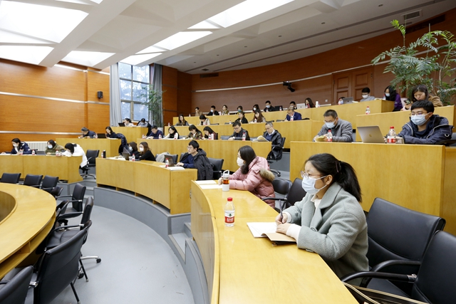 教务部部长栗苹做开班动员。她介绍了《讲义》推出的背景和在高校教书育人中的重要性,谈到此次培训是落实《讲义》讲授和推广工作的第一步,希望各位老师高度重视、认真对待,并把培训成果带入今后的教学过程中。